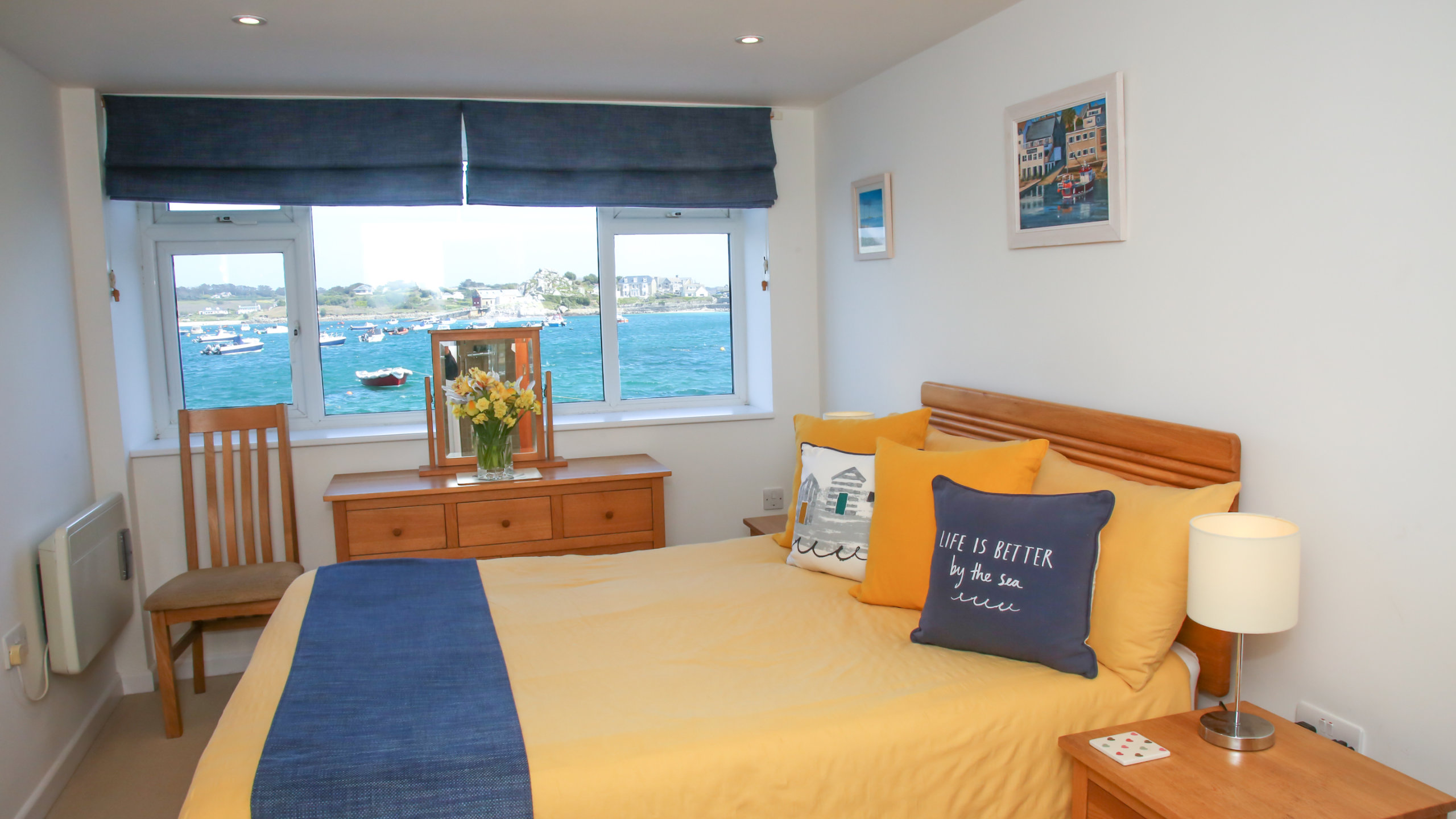 Awaken to the soothing sound of the sea lapping gently against the granite walls outside your bedroom. Enjoy a freshly ground coffee as you watch St Mary’s harbour slowly come to life. Observe the abundant birdlife on the constantly changing shoreline from the comfort of your armchair.